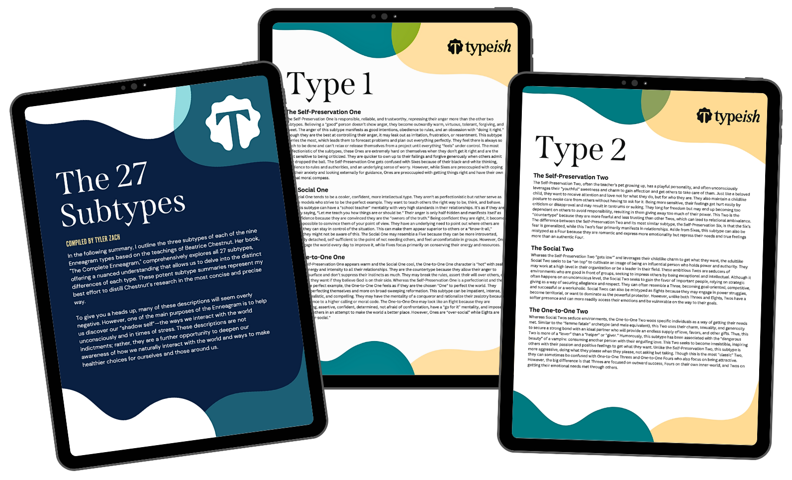 In this 5,800-word guide, I outline the 3 subtypes of each of the 9 Enneagram types based on the teachings of Beatrice Chestnut. Use this to better understand the nuances of each type and why you might not look like others of the same type. Also, you can use this as a teaching resource and reference guide!